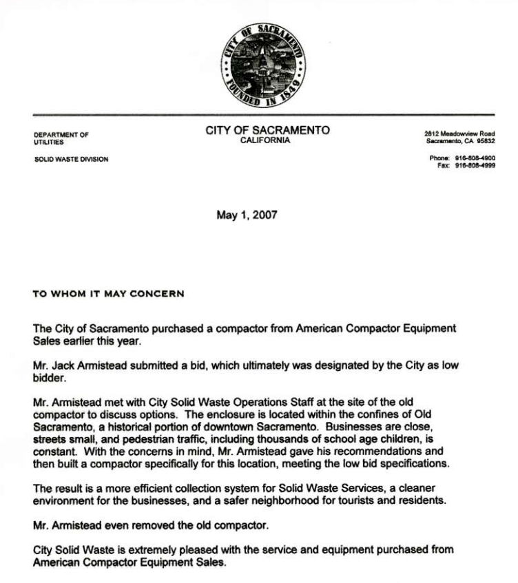 Welcome to American Compactor Equipment Sales, your go-to destination for top-notch compactor and baler rentals across the Central Valley, Fresno and Clovis. With a commitment to premium service and lightning-fast lead times, we're here to provide a truly all-inclusive solution for all your trash compactor and baler needs. Our local footprint ensures that no matter where you are, we've got you covered. Trust American Compactor Equipment Sales for hassle-free and reliable rental services.